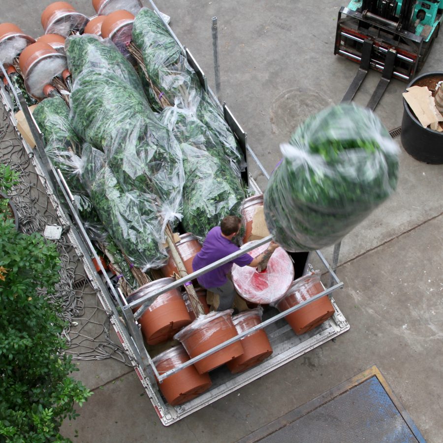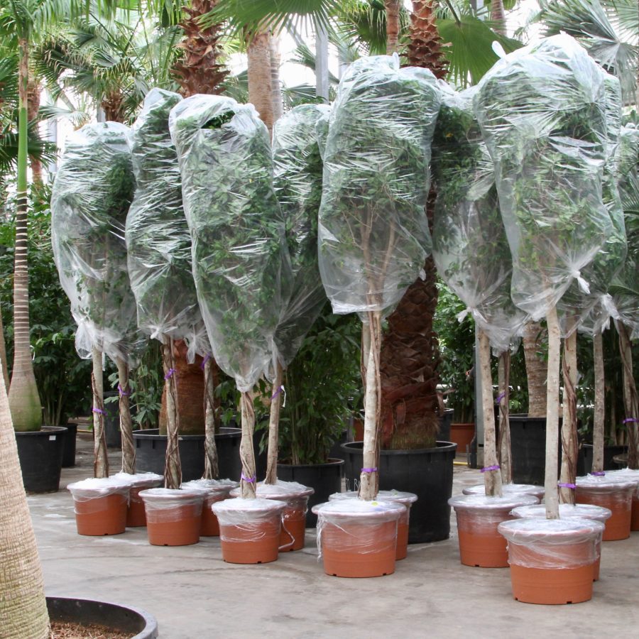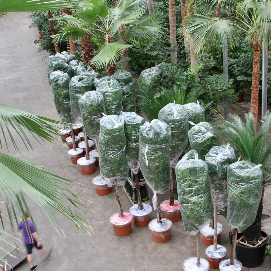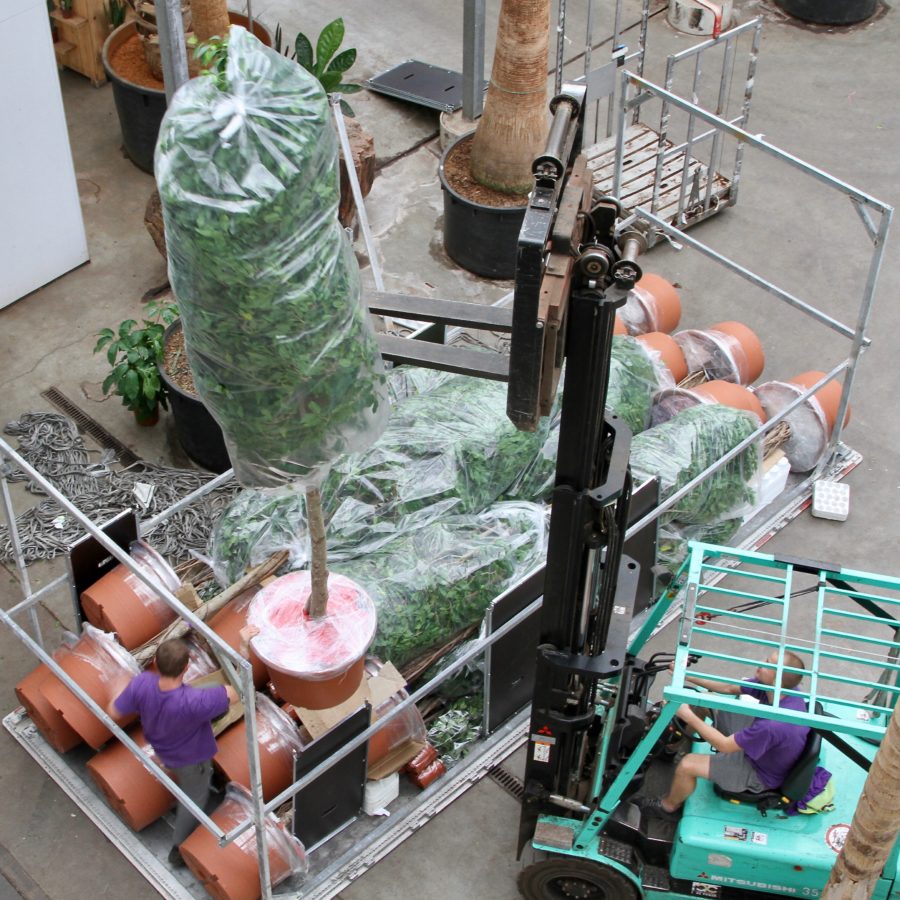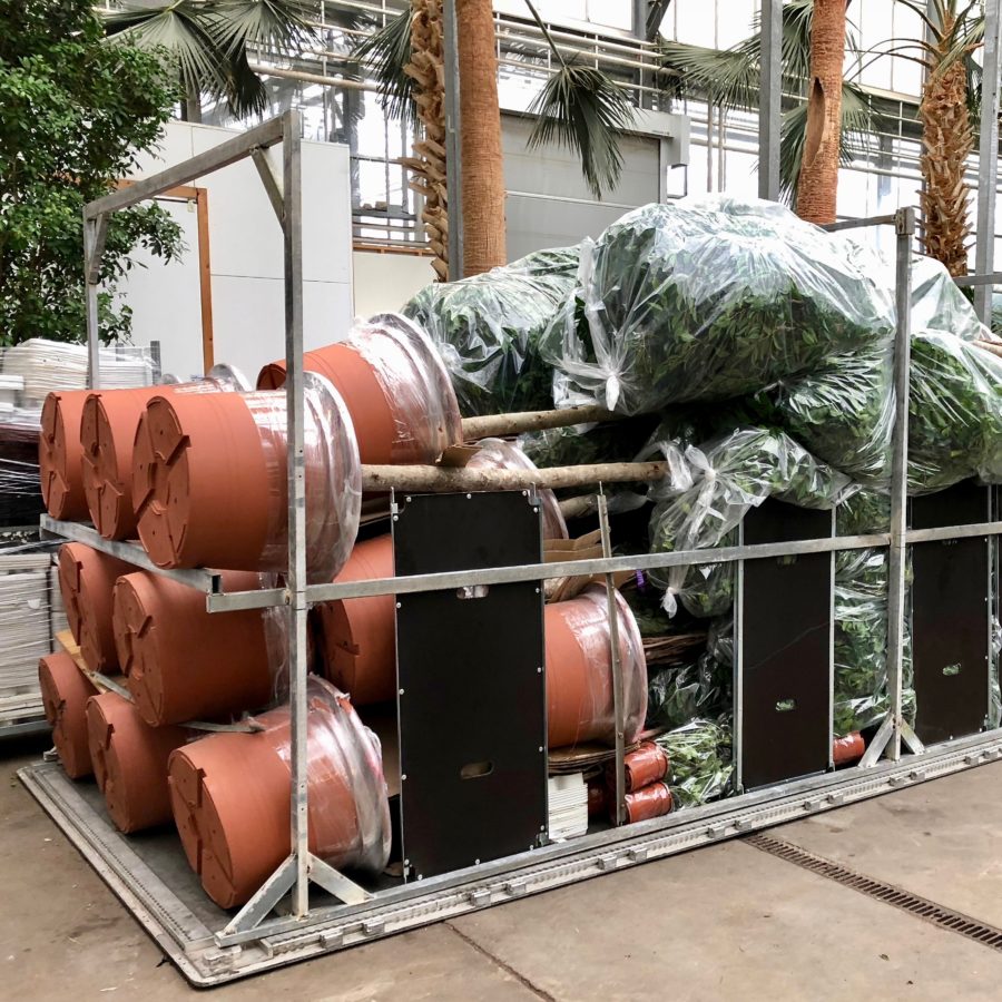Fachjan heeft deze Ficussen recentelijk geleverd. Niet per auto of boot maar per vliegtuig. Er is door ons een speciale luchtvrachtcontainer gebouwd waar de 40 grote Ficussen op/in zijn vervoerd.