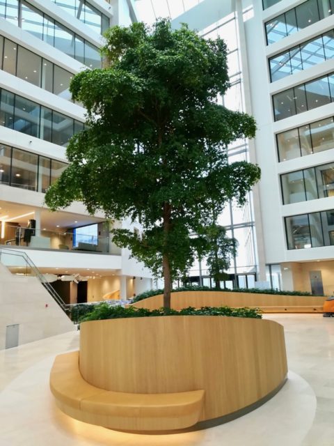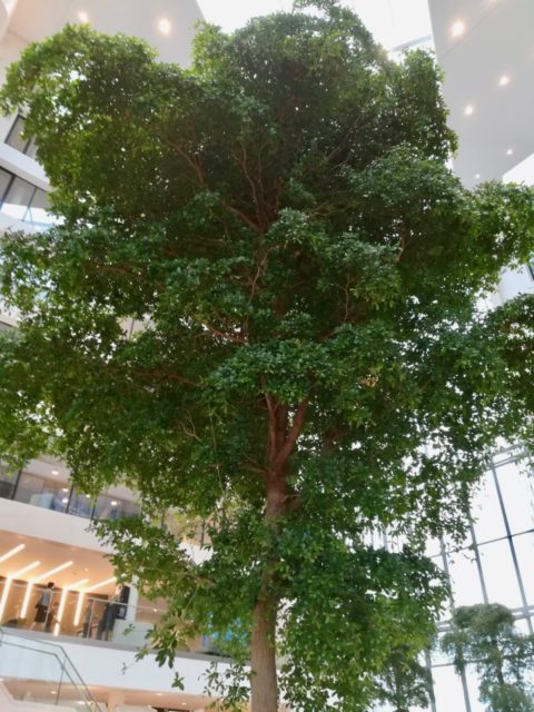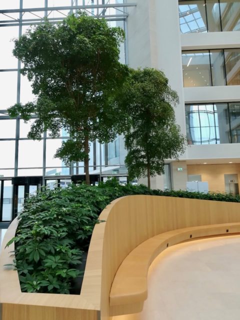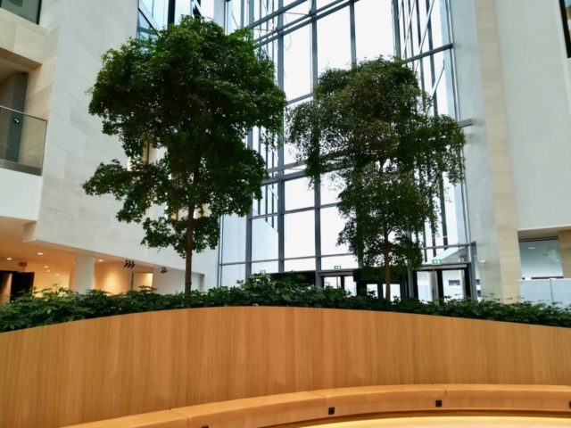Fraaie Bucida buceras bomen in een kantoor bij vliegveld Zaventem bij Brussel, België. Project met Fachjan planten, gerealiseerd door de firma Donkergroen.