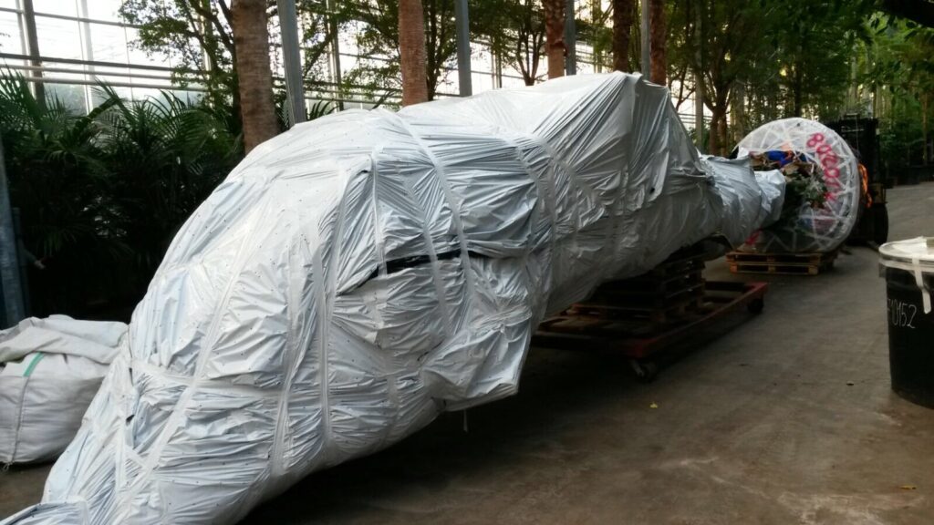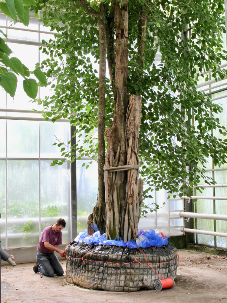 Almost 30 trucks transported the plants to Paris. The plants supplied include Ficus religiosa (12m) and various large Barringtonias.